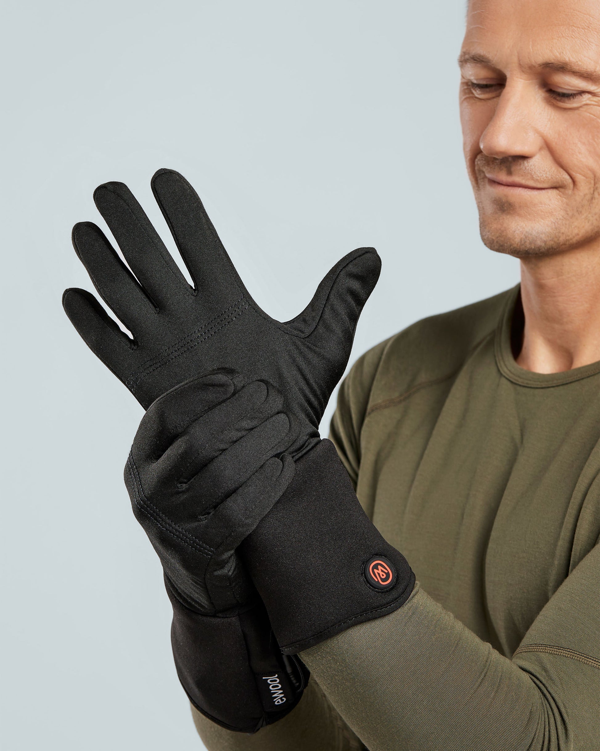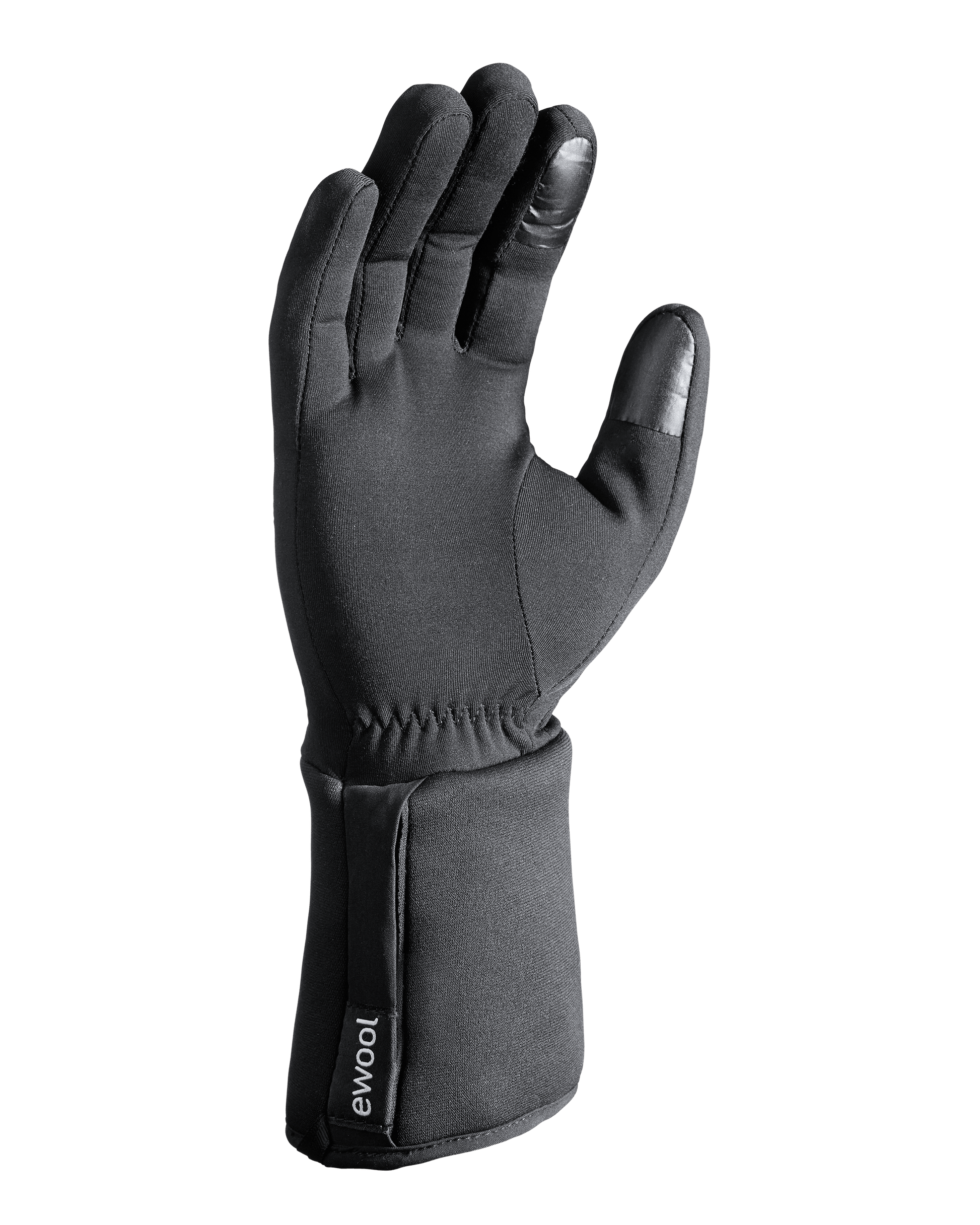 The ewool heated glove liner outperforms as a standalone on cold, dry days but also layers easily in more demanding conditions under any pair of gloves.